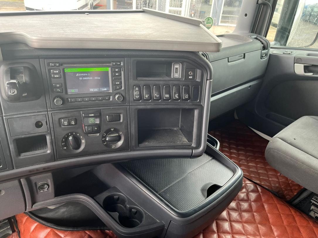 2 lůžka, ABS, AdBlue, aut. převodovka, autochladnička, autorádio, CD přehrávač, centrální zamykání, el. okna, el. zrcátka, kabina dlouhá, kabina vysoká, klimatizace, motorová brzda, nastavitelný volant, palubní počítač, pérování ocel/vzduch, pohon 4x2, posilovač řízení, retardér, tachograf, tempomat, uzávěrka diferenciálu, venkovní teploměr, výškově nastavitelná sedadla, výškově nastavitelné sedadlo řidiče