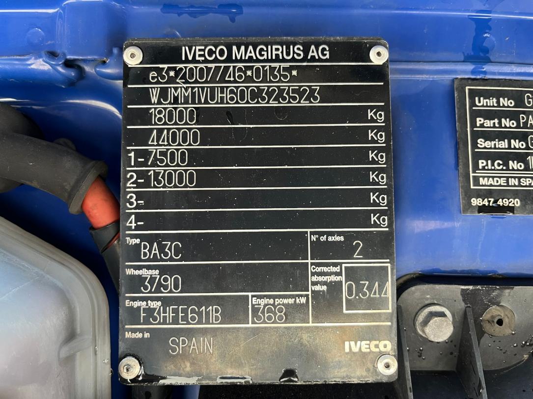 2 lůžka, ABS, AdBlue, aut. převodovka, autochladnička, autorádio, CD přehrávač, centrál dálkový, centrální zamykání, el. okna, el. zrcátka, kabina dlouhá, kabina vysoká, klimatizace, motorová brzda, nastavitelný volant, nezávislé topení s čas. předehřívačem, pérování ocel/vzduch, plní 'EURO VI', pohon 4x2, posilovač řízení, střešní okno, tachograf, tempomat, uzávěrka diferenciálu, venkovní teploměr, výškově nastavitelná sedadla, výškově nastavitelné sedadlo řidiče