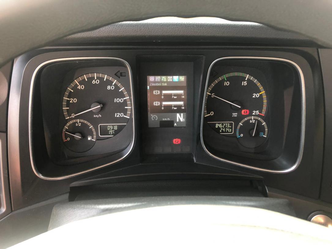 2 lůžka, ABS, AdBlue, aut. převodovka, autochladnička, autorádio, AUX, CD přehrávač, centrální zamykání, el. zrcátka, kabina dlouhá, kabina vysoká, klimatizace, nastavitelný volant, nezávislé topení, nezávislé topení s čas. předehřívačem, palubní počítač, pérování vzduch, plní 'EURO V', pohon 6x2, posilovač řízení, střešní okno, tachograf, tempomat, USB, uzávěrka diferenciálu, venkovní teploměr, vyhřívaná zrcátka, výškově nastavitelná sedadla, výškově nastavitelné sedadlo řidiče