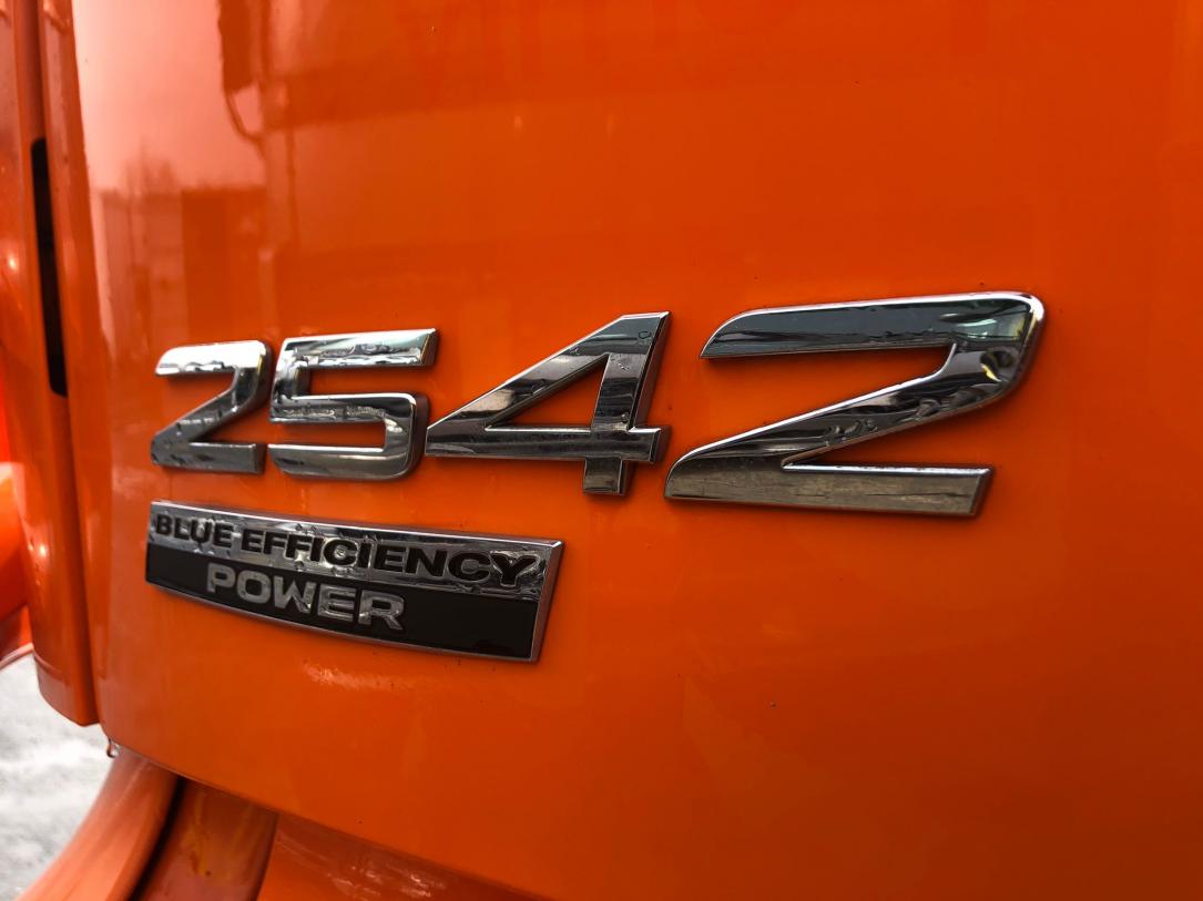 2 lůžka, ABS, AdBlue, aut. převodovka, autochladnička, autorádio, AUX, CD přehrávač, centrál dálkový, centrální zamykání, el. okna, kabina dlouhá, kabina vysoká, klimatizace, motorová brzda, nastavitelný volant, palubní počítač, pérování vzduch, plní 'EURO V', pohon 6x2, posilovač řízení, protiprokluzový systém kol (ASR), střešní okno, tachograf, tempomat, venkovní teploměr, výškově nastavitelná sedadla, výškově nastavitelné sedadlo řidiče