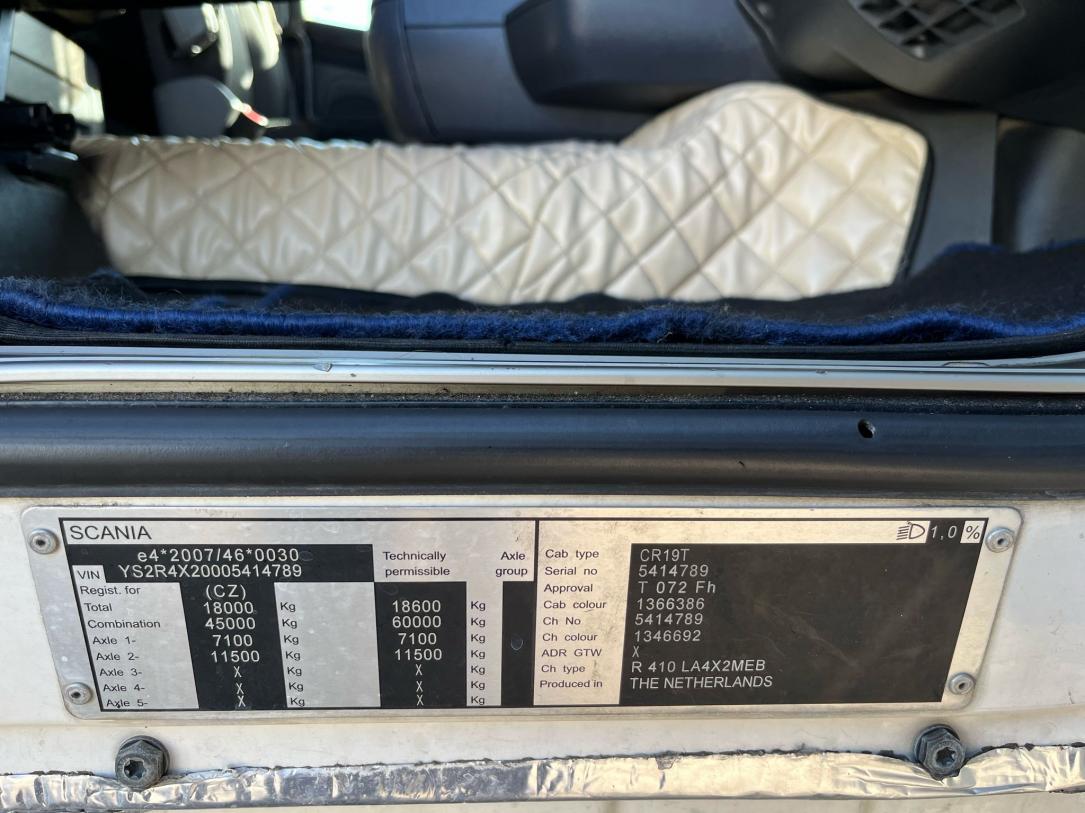 2 lůžka, ABS, AdBlue, aut. převodovka, autochladnička, autorádio, centrál dálkový, centrální mazání, el. okna, el. zrcátka, kabina dlouhá, kabina vysoká, klimatizace, nastavitelný volant, palubní počítač, pérování vzduch, plní 'EURO VI', pohon 4x2, posilovač řízení, protiprokluzový systém kol (ASR), retardér, tachograf, tempomat, uzávěrka diferenciálu, výškově nastavitelná sedadla, výškově nastavitelné sedadlo řidiče
